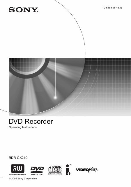 Download SONY RDR-GX210 Anleitung Englisch (96 Seiten) 12.90 EUR