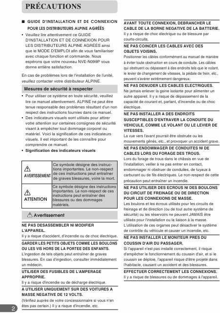 ALPINE NVE-N099P Installationsanweisungen Französisch