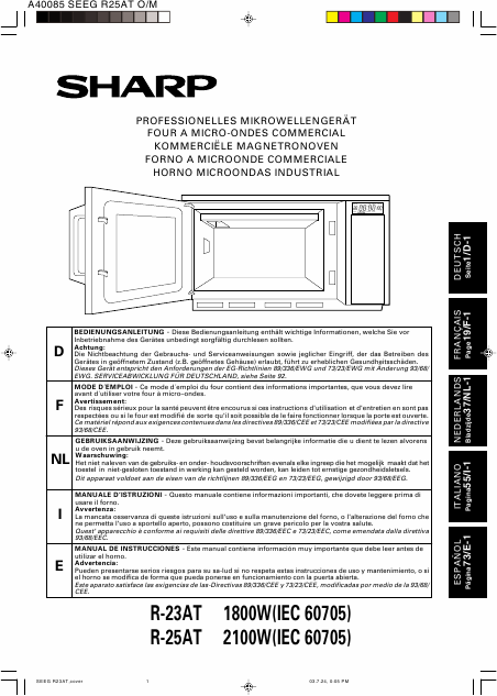 Baixar SHARP R-25AT Instruções Francês (24 Pages) 15.90 EUR