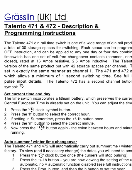 Download GRASSLIN Talento 471 Anleitung Englisch (1 Seiten) 12.90 EUR