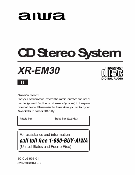 Baixar AIWA XR-EM30 Instruções Espanhol (20 Pages) 12.90 EUR