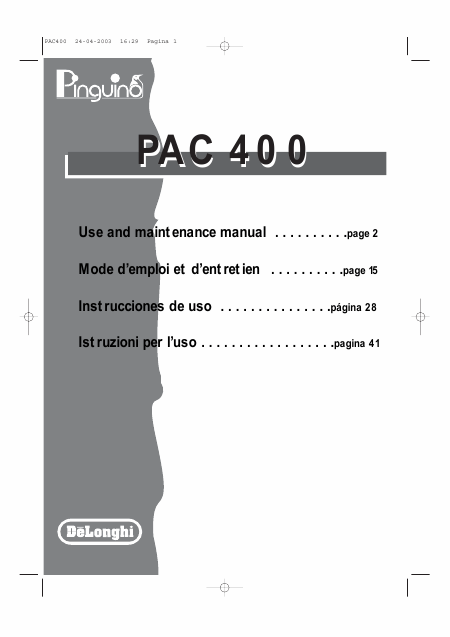DELONGHI Pinguino PAC 400 Istruzione Inglese