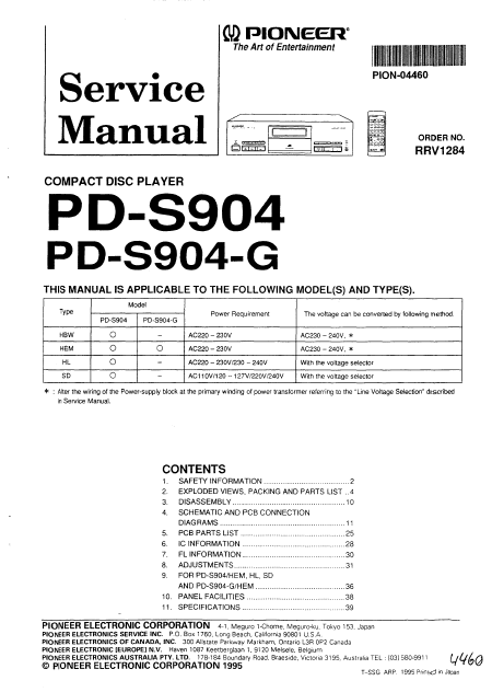 Download PIONEER PD-S904 Service Manual English (34 Pages) 15.90 EUR