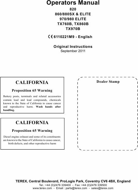 Download TEREX 860 SX Users Guide English (303 Pages) 59.90 EUR