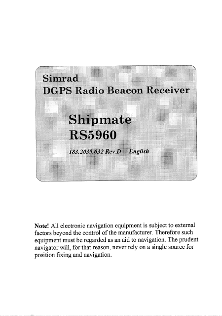 SIMRAD Shipmate RS5960 Anleitung Englisch