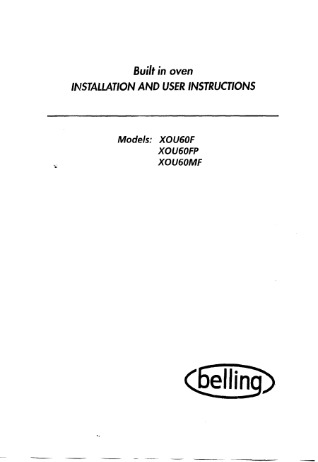 BELLING XOU60F Anleitung Englisch