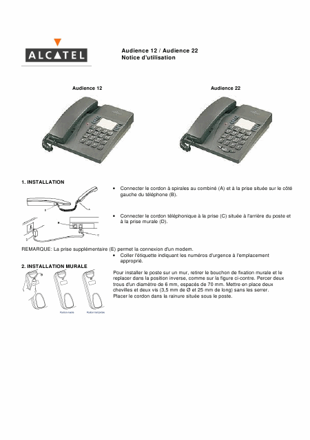 Baixar ALCATEL Audience 12 Instruções Francês (5 Pages) 12.90 EUR