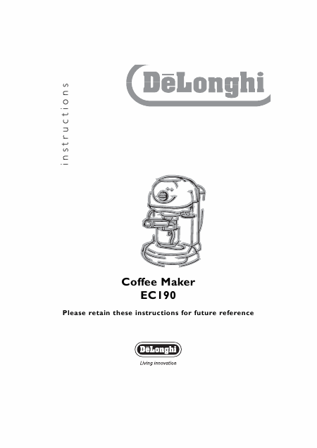 Telecharger DELONGHI EC 190 (EC190) Mode emploi Anglais (12 Pages) 12.90 EUR