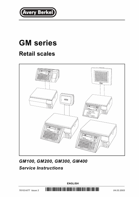 Baixar AVERY BERKEL GM100 Manual de serviço Inglês (182 Pages) 15.90 EUR