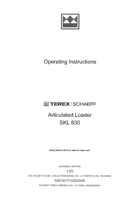 Baixar TEREX SKL 830 Serie A Instruções Alemão (49 Pages) 59.90 EUR