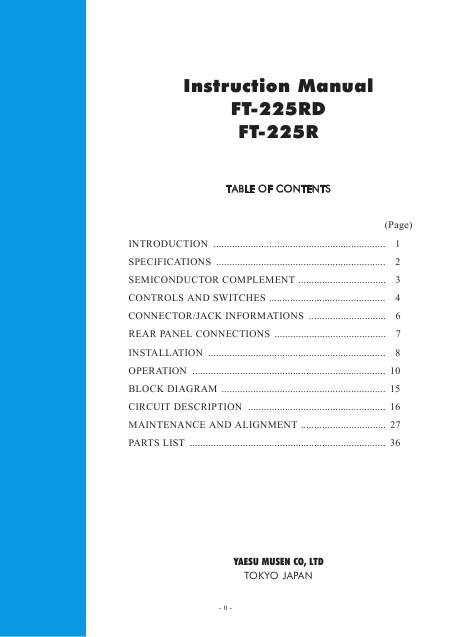 Scaricare YAESU FT-225R / FT-225RD Istruzione Inglese (50 Pagine) 15.90 EUR