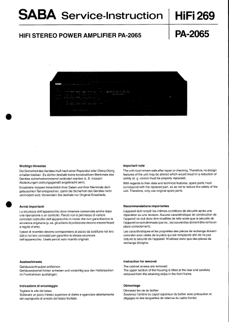 Descargar SABA PA-2065 Manual de taller Francés (9 Páginas) 15.90 EUR