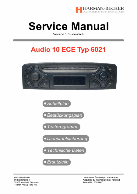 Download BECKER Audio 10 ECE Typ 6021 Serviceanleitung Deutsch (40 Seiten) 15.90 EUR