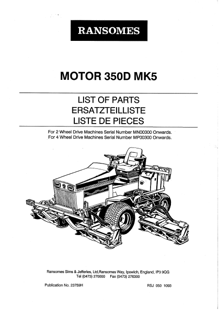 RANSOMES Motor 350D MK5 Lista de peças Inglês