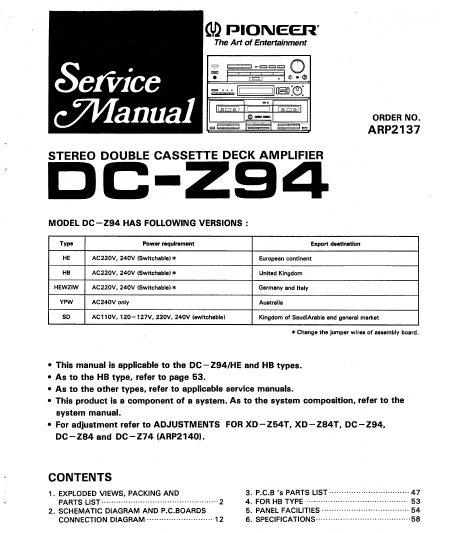 Download PIONEER DC-Z94 Service Manual English (95 Pages) 39.90 EUR
