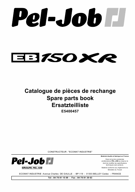 Telecharger PEL-JOB EB150XR Liste pieces detachees Français (219 Pages) 39.90 EUR