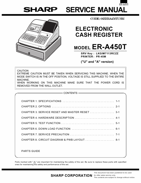 Baixar SHARP ER-A450 Manual de serviço Inglês (76 Pages) 39.90 EUR