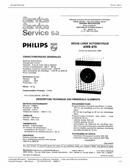Telecharger PHILIPS AWB 675 Manuel de service Français (17 Pages) 39.90 EUR