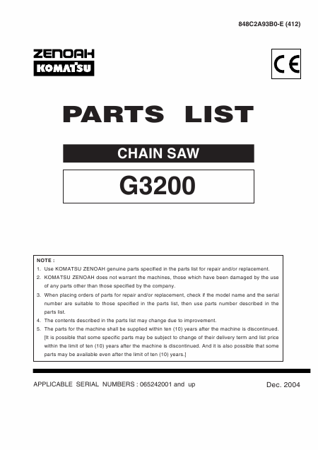 Scaricare ZENOAH G3200 Lista parti di ricambio Inglese (6 Pagine) 15.90 EUR