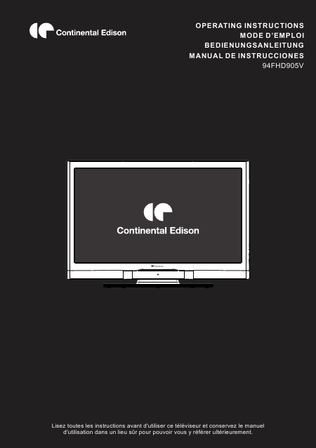 CONTINENTAL EDISON 94FHD905V Istruzione Inglese