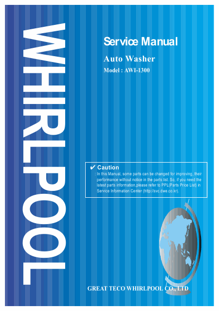 WHIRLPOOL AWI1300 Manual de taller Inglés