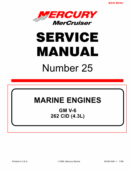 MERCURY MerCruiser Num. 25 GM V-6 262 CID 4.3L (1999) Manuel de service Anglais