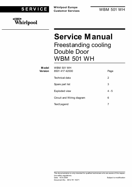 Download WHIRLPOOL WBM 501 WH (WBM501) Service Manual English (7 Pages) 15.90 EUR