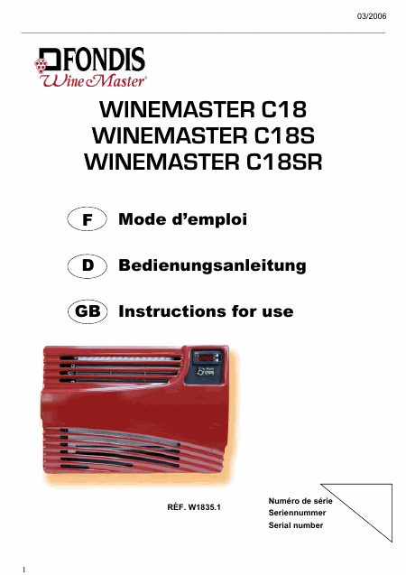 Download FONDIS Winemaster C18 Anleitung Französisch (11 Seiten) 15.90 EUR