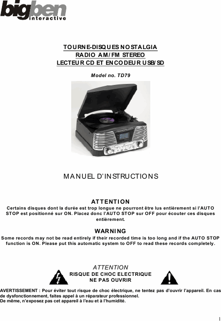 Download BIGBEN TD79 Anleitung Französisch (8 Seiten) 15.90 EUR