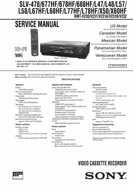 SONY SLV-X50 Serviceanleitung Englisch