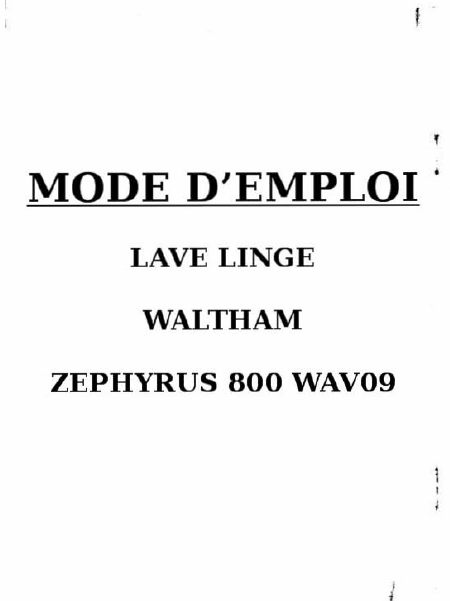 Descargar WALTHAM Zephyrus 800 WAV09 Guía del usuario Francés (30 Páginas) 12.90 EUR
