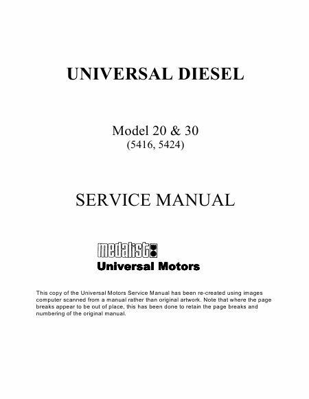 UNIVERSAL DIESEL Model 20 & 30 (5416, 5424) Manual de serviço Inglês