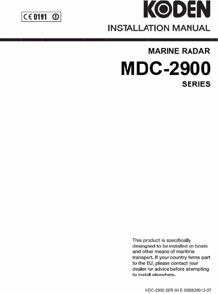 Descargar KODEN MDC-2900 Manual de instalación Inglés (110 Páginas) 39.90 EUR