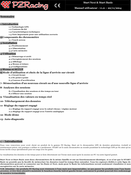 Baixar PZ RACING START BASIC Instruções Francês (9 Pages) 15.90 EUR
