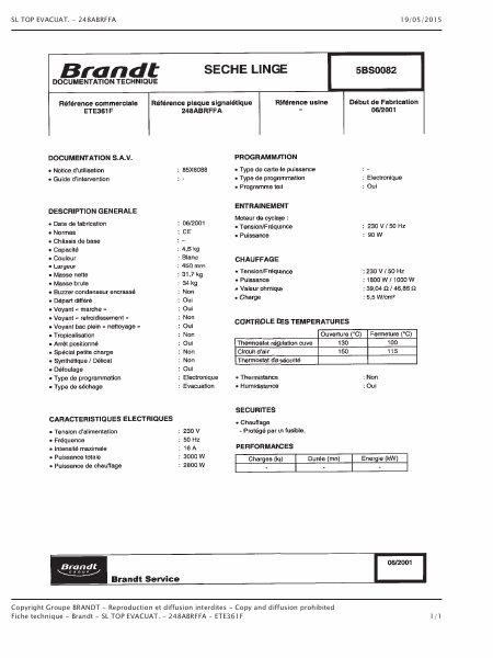 Download BRANDT ETE361F Serviceanleitung Französisch (11 Seiten) 39.90 EUR