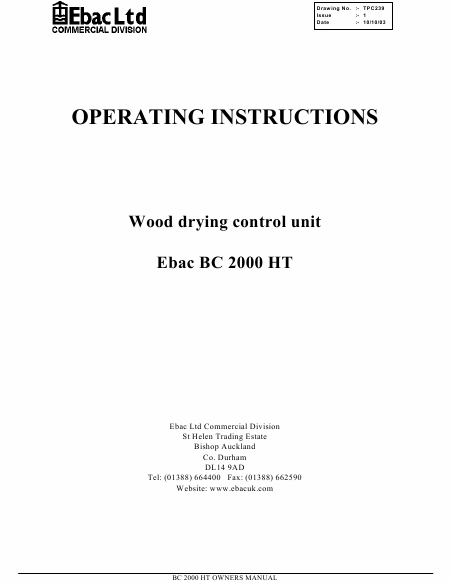 Baixar EBAC BC 2000 HT Manual de serviço Inglês (36 Pages) 15.90 EUR