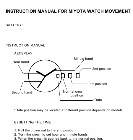 Telecharger MIYOTA 2115 Mode emploi Anglais (2 Pages) 12.90 EUR