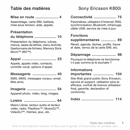 Baixar SONY ERICSSON K800i Instruções Francês (117 Pages) 12.90 EUR