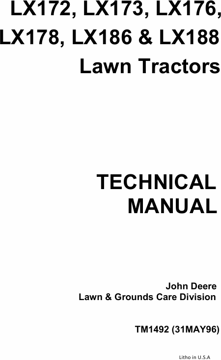 JOHN DEERE LX176 Manuel de service Anglais