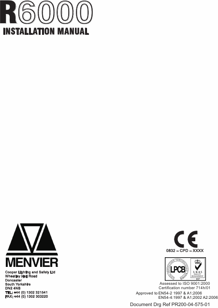 MENVIER R6000 Manual de Instalação Inglês