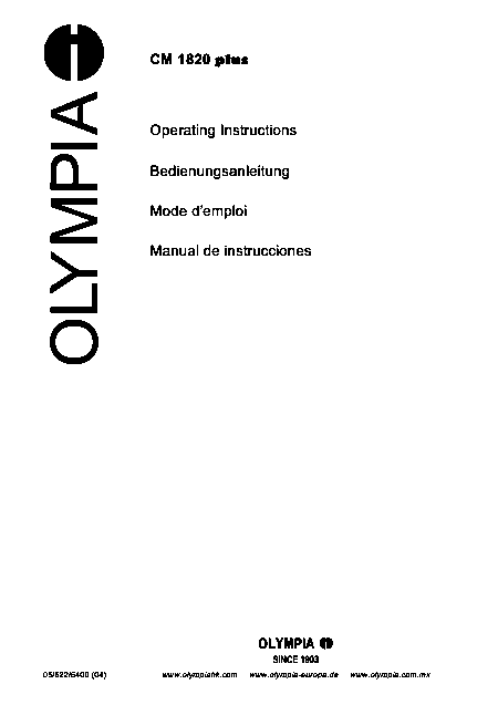 OLYMPIA CM 1820 Plus (CM1820 Plus) Users Guide English