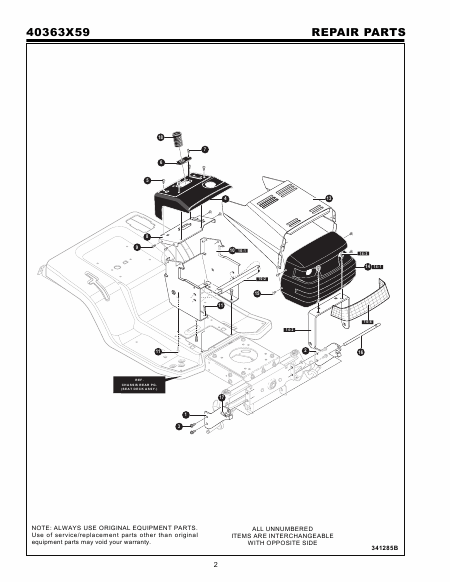 MURRAY 40363x59 Liste pieces detachees Anglais