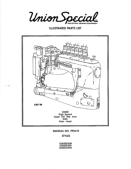 UNION SPECIAL 35800 Lista de piezas de repuesto Inglés