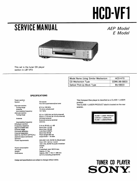 Descargar SONY HCD-VF1 Manual de taller Inglés (0 Páginas) 12.90 EUR