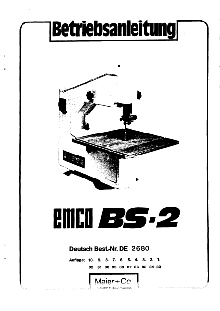Baixar EMCO BS-2 Instruções Alemão (45 Pages) 15.90 EUR