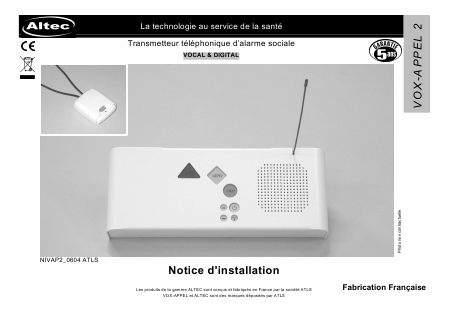 ALTEC VOX-APPEL 2 Manual de instalación Francés