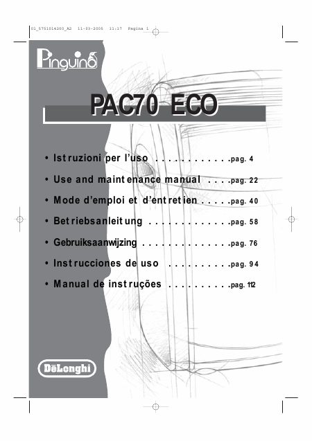 Telecharger DELONGHI Pinguino PAC 70 Mode emploi Français (0 Pages) 12.90 EUR