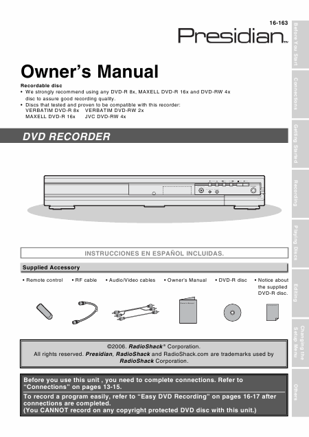 PRESIDIAN 16-163 Mode emploi Anglais