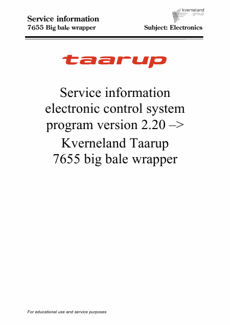 KVERNELAND UN 7655 Electronic Control System 2.20 --> Manual de taller Inglés