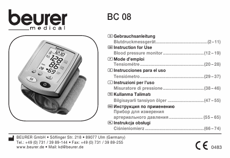 Download BEURER BC 08 (BC08) Anleitung Spanisch (10 Seiten) 12.90 EUR